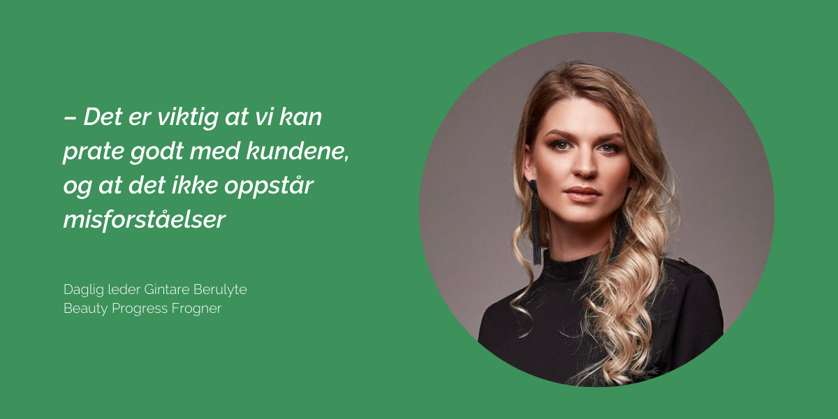 På skjønnhetssalongen Beauty Progress på Frogner i Oslo, jobber en gruppe litauiske kvinner med å å bli bedre i norsk. Til daglig tilbyr de skjønnhetsbehandlinger til koronaslitne hovedstadsborgere. Daglig leder Gintare forteller at hun valgte å melde på alle medarbeiderne på gratis norskkurs på arbeidsplassen gjennom Kompetansehuset Neo.